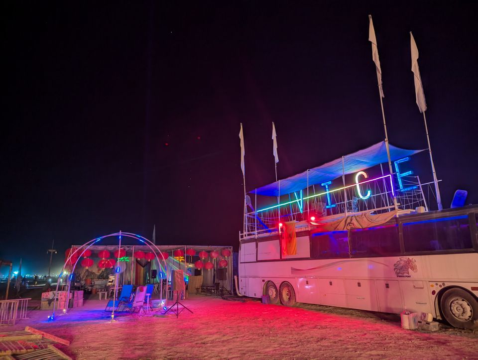 Two guys + a cart became the sexiest iced-coffee stop on playa: 24 years of serving VICE (Vietnamese Iced Coffee Experience) + TITS (Thai Iced Tea Service). Swing by for coffee, beard/nail spa, tarot, and great campmates. Gay/male-identified; all welcome. Join Us!